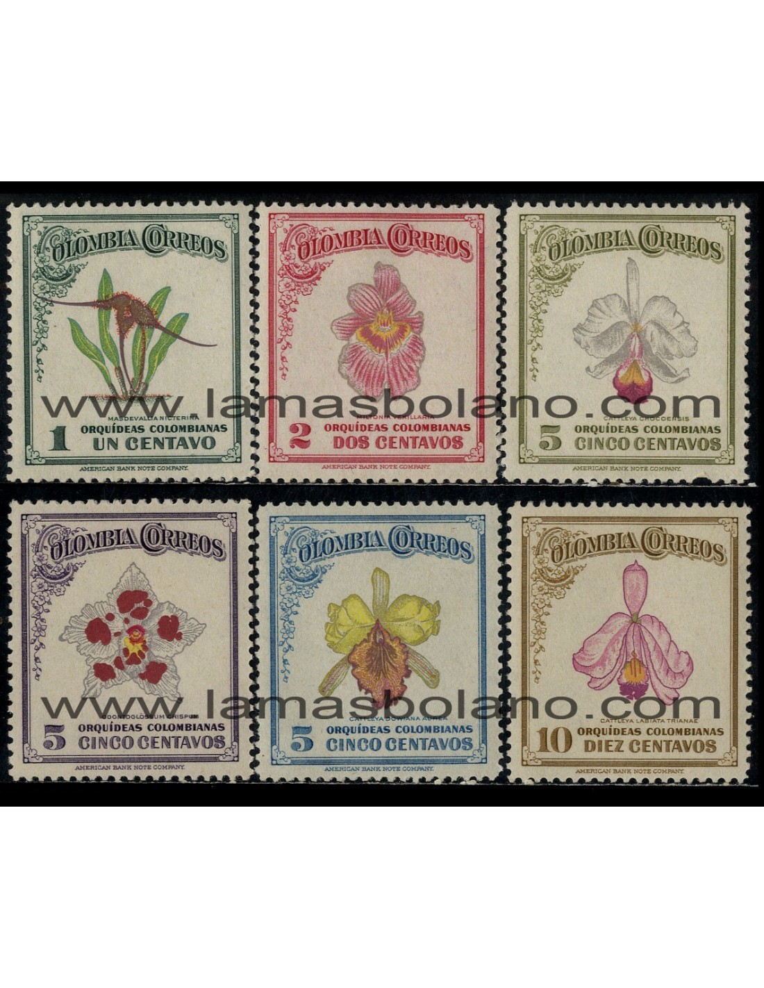 SELLOS DE COLOMBIA 1947 - ORQUIDEAS - 6 VALORES FIJASELLO - CORREO