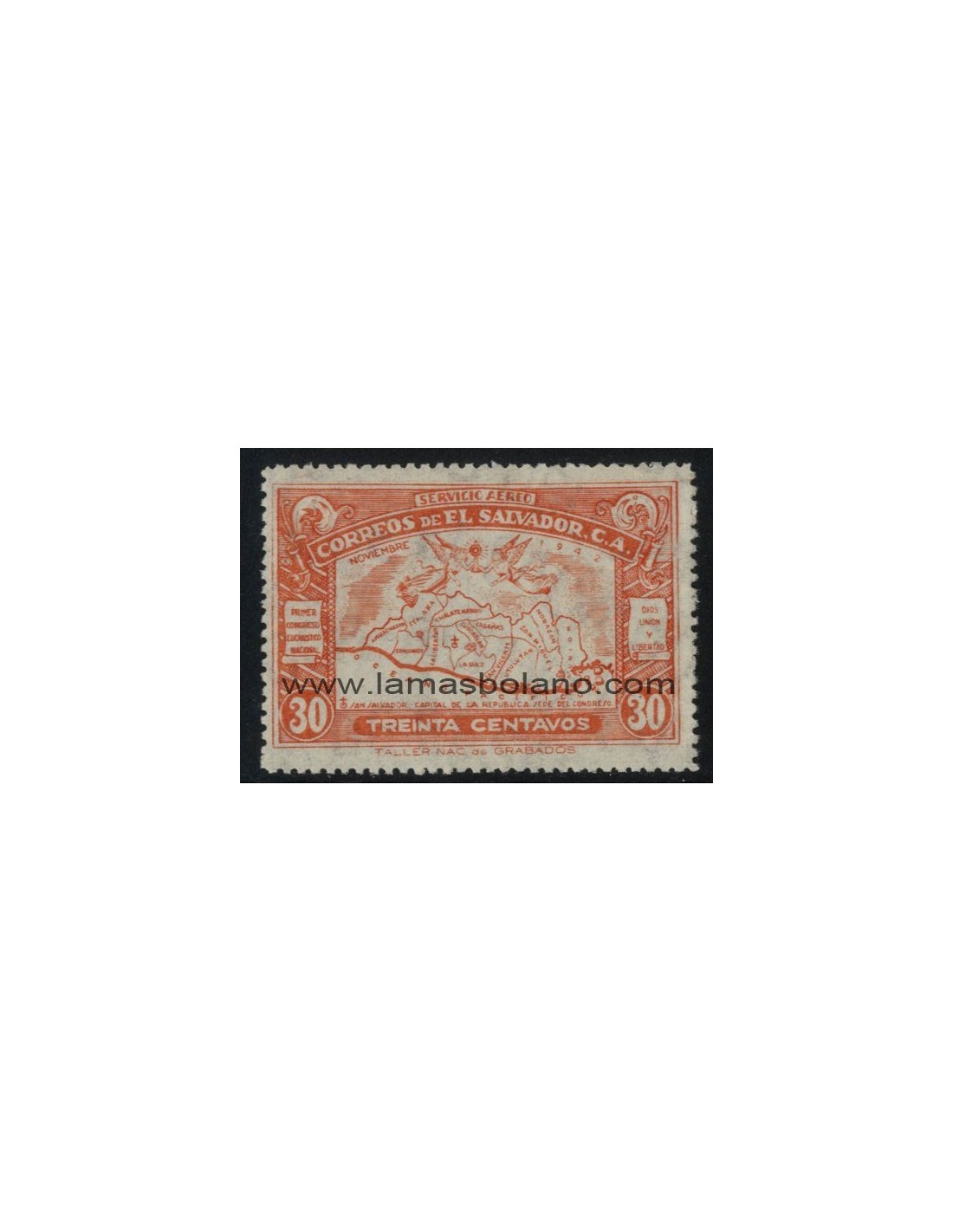 SELLOS EL SALVADOR 1942 - I CONGRESO EUCARISTICO NACIONAL - 1 VALOR - AEREO