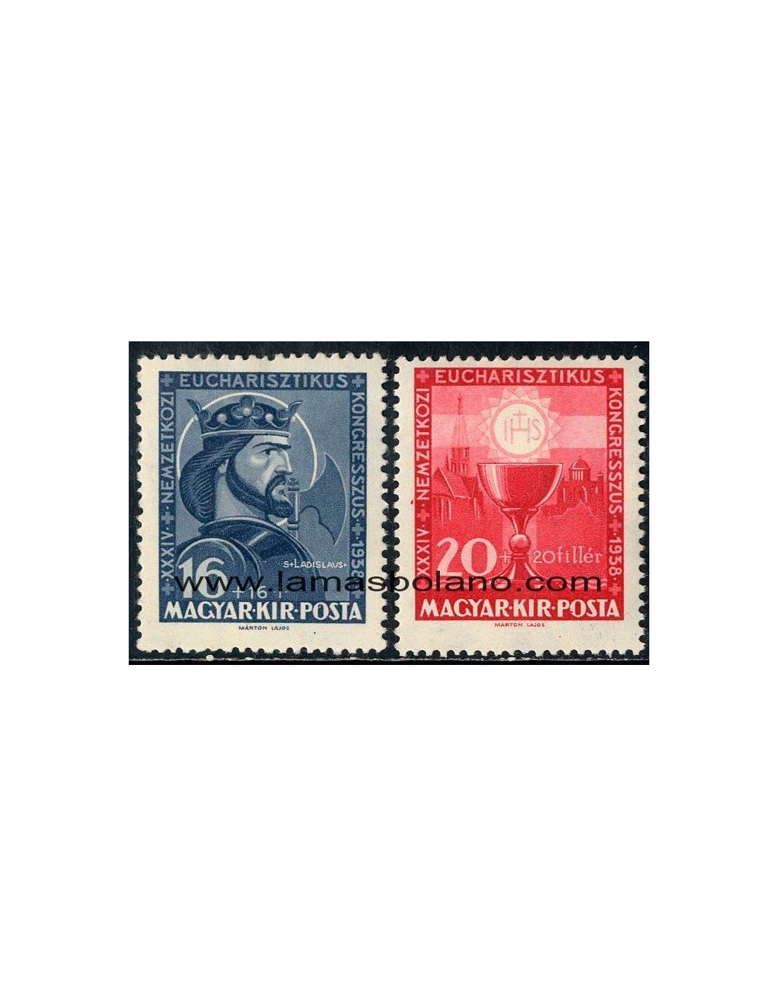 SELLOS HUNGRIA 1938 - 34 CONGRESO EUCARISTICO INTERNACIONAL EN BUDAPEST - 2 VALORES* FIJASELLO - CORREO