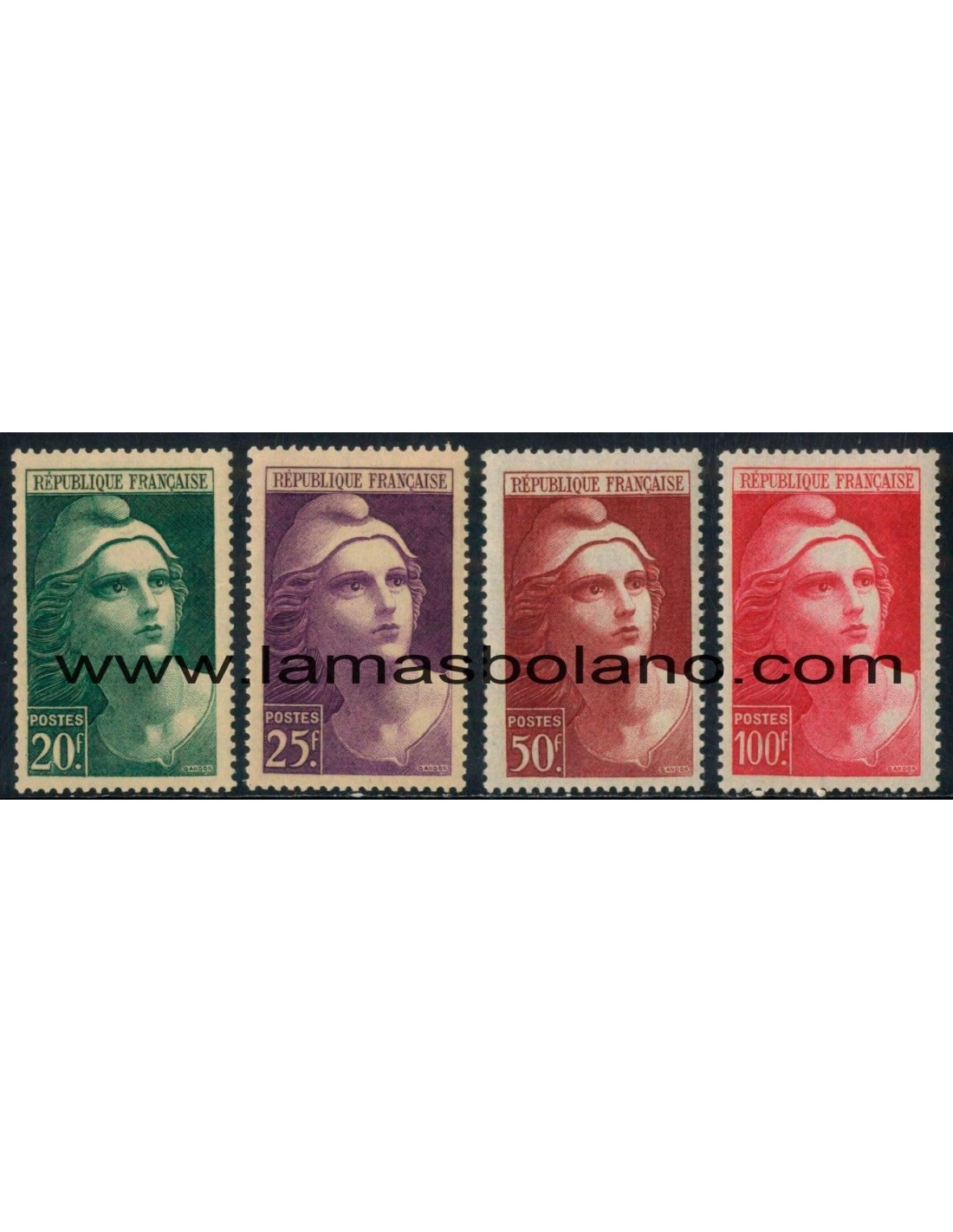 SELLOS FRANCIA 1945-47 - MARIANNE DE GANDON - 4 VALORES FIJASELLO - CORREO