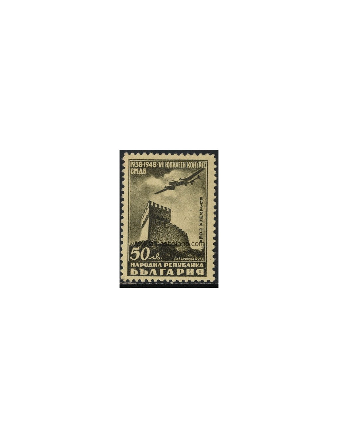 SELLOS DE BULGARIA 1948 - DIA DEL SELLO - CONGRESO DE SOCIEDADES FILATELICAS EN SOFIA - 1 VALOR - AEREO