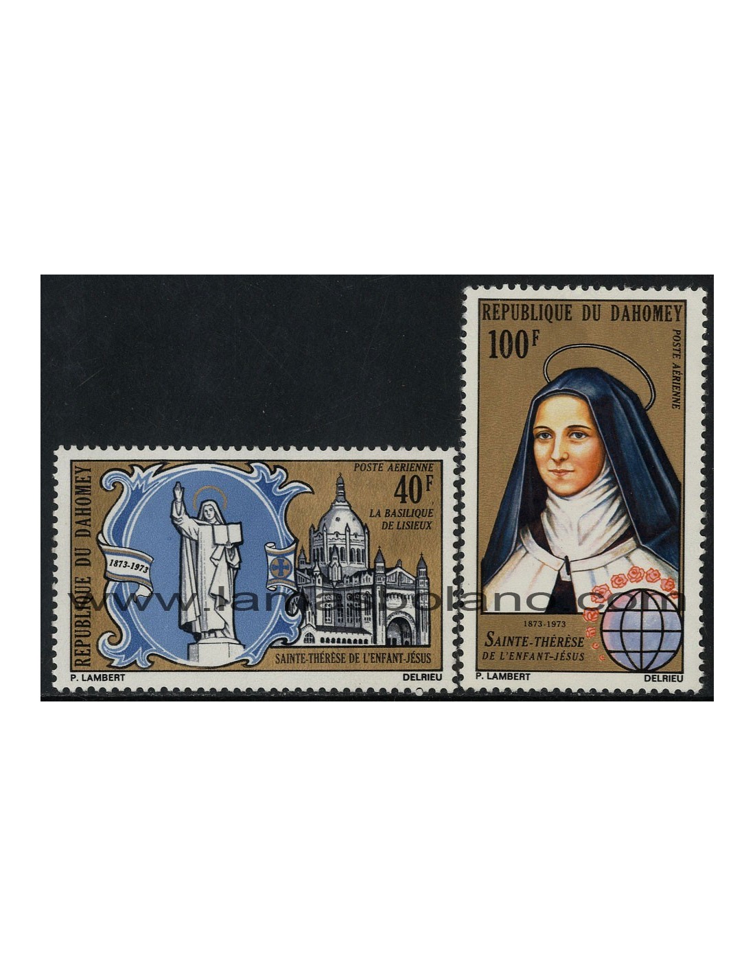 SELLOS DAHOMEY 1973 - SANTA TERESA DEL NIÑO JESUS CENTENARIO DEL NACIMIENTO - 2 VALORES - AEREO