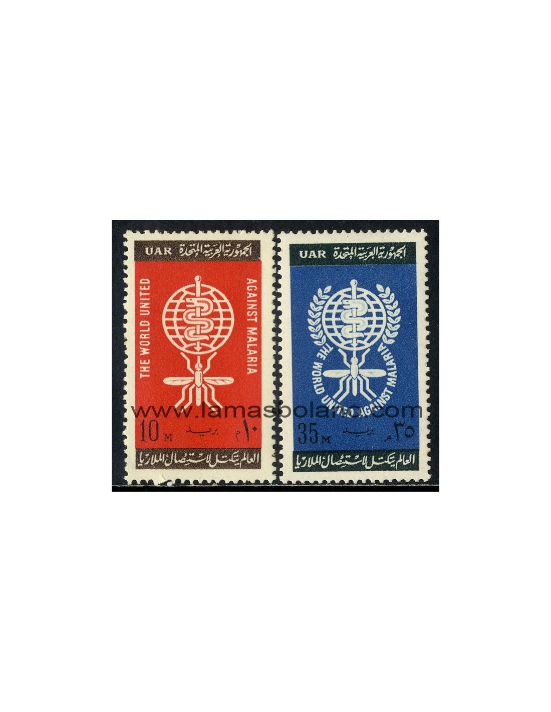 SELLOS EGIPTO 1962 - LUCHA CONTRA LA MALARIA - OMS Y MOSQUITO - 2 VALORES - CORREO