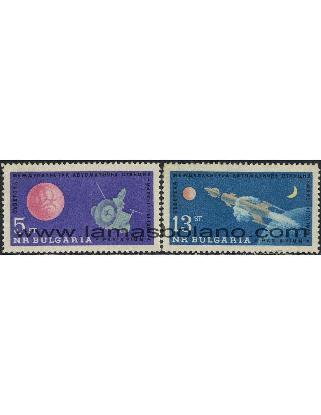 SELLOS DE BULGARIA 1963 - LANZAMIENTO SOVIETICO DE UNA SONDA HACIA MARTE - 2 VALORES SEÑAL FIJASELLO - AEREO