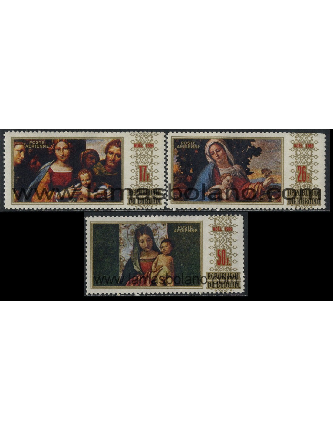 SELLOS DE BURUNDI 1969 - NAVIDAD - PINTURAS - TISI GAROFALA - J. NEEGRETTI - G. BARBARELLI - 3 VALORES - AEREO