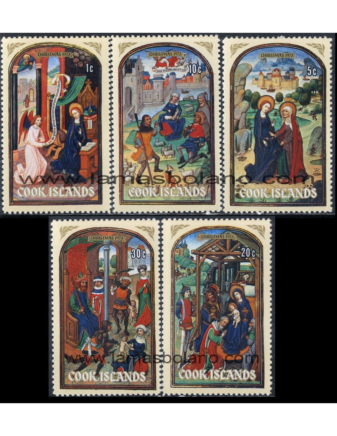SELLOS DE ISLAS COOK 1973 - NAVIDAD - ILUMINACIONES MEDIEVALES DEL s.15 - 5 VALORES - CORREO