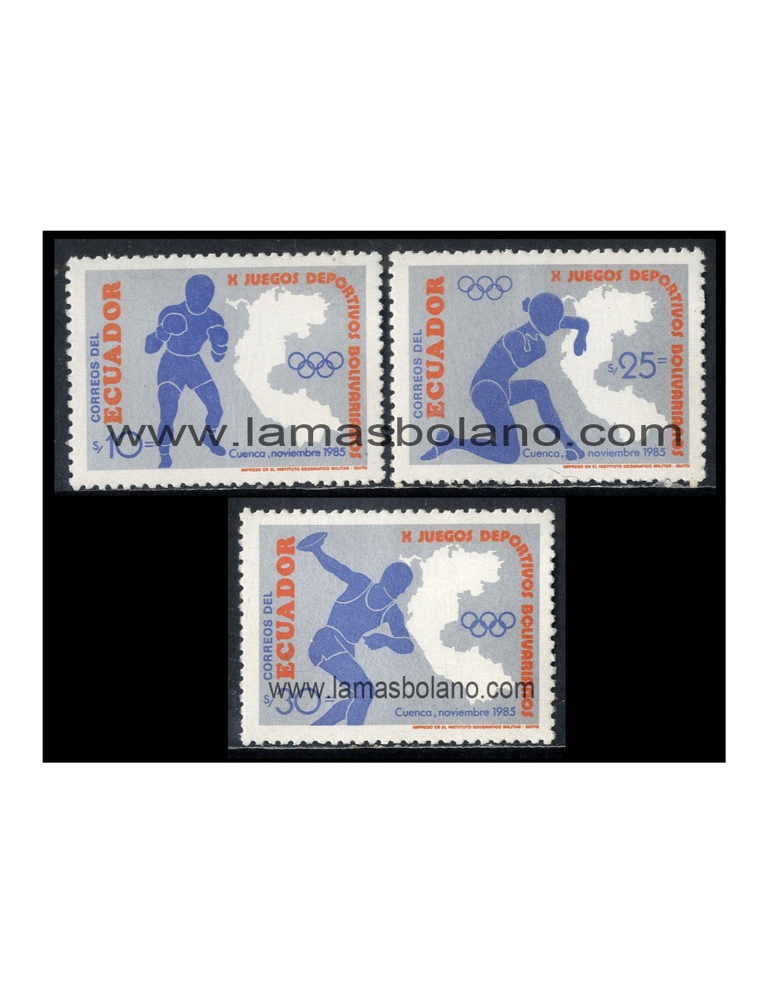 SELLOS ECUADOR 1985 - 10 JUEGOS DEPORTIVOS PANAMERICANOS EN CUENCA - 3 VALORES - CORREO