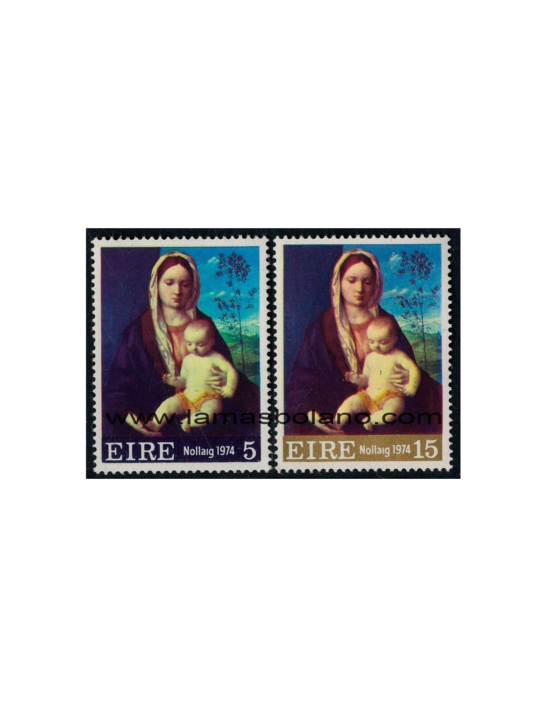 SELLOS IRLANDA 1974 NAVIDAD PINTURA RELIGIOSA DE GIOVANNI BELLINI - 2 VALORES - CORREO
