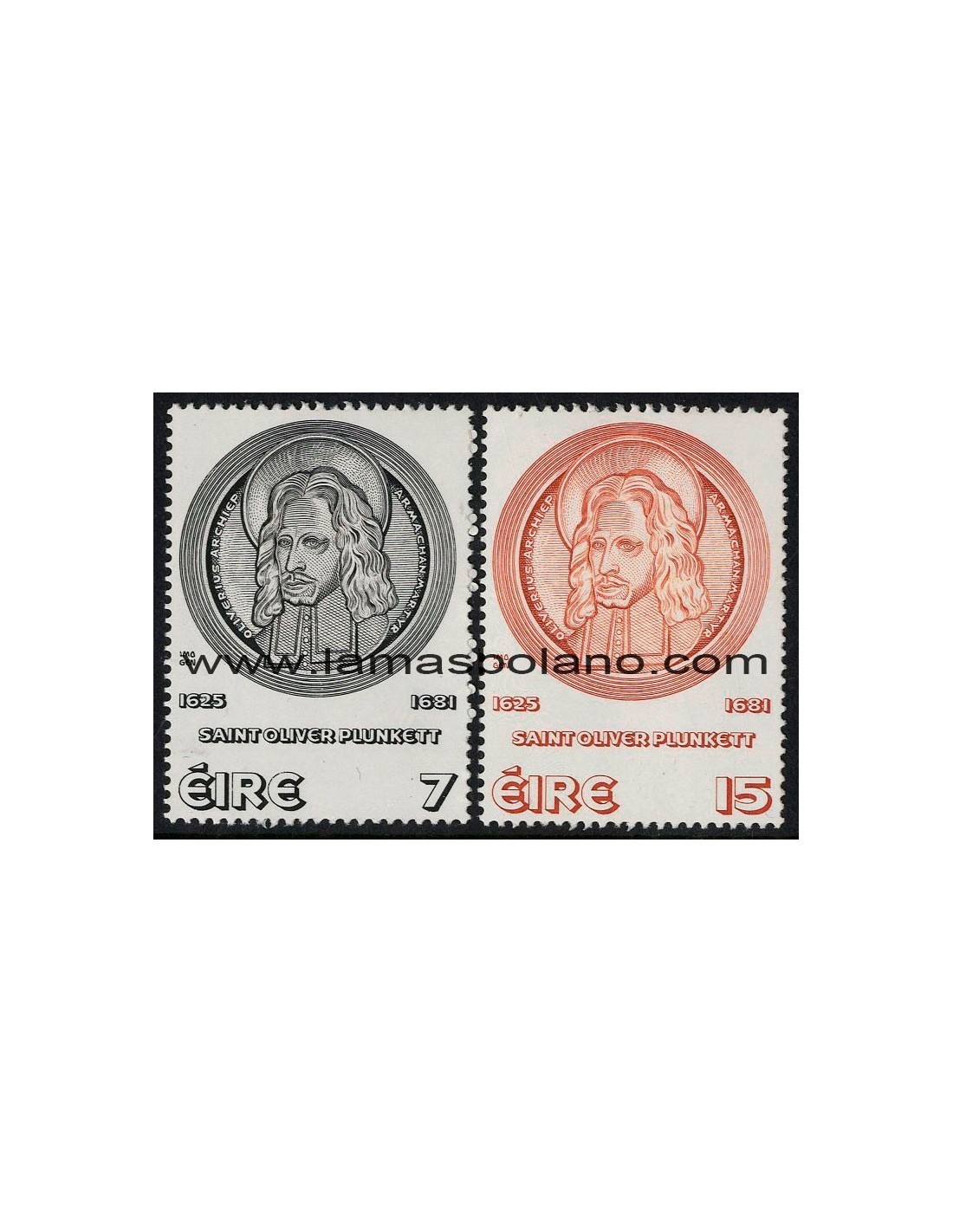 SELLOS IRLANDA 1975 CANONIZACION DE OLIVER PLUNKETT - 2 VALORES - CORREO