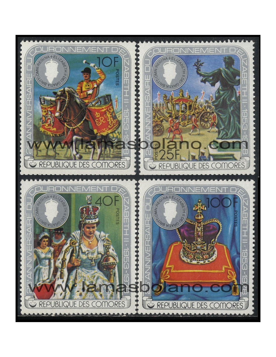 SELLOS DE COMORES 1978 - 25 ANIVERSARIO DE LA CORONACION DE ELIZABETH II DE INGLATERRA - 4 VALORES - CORREO