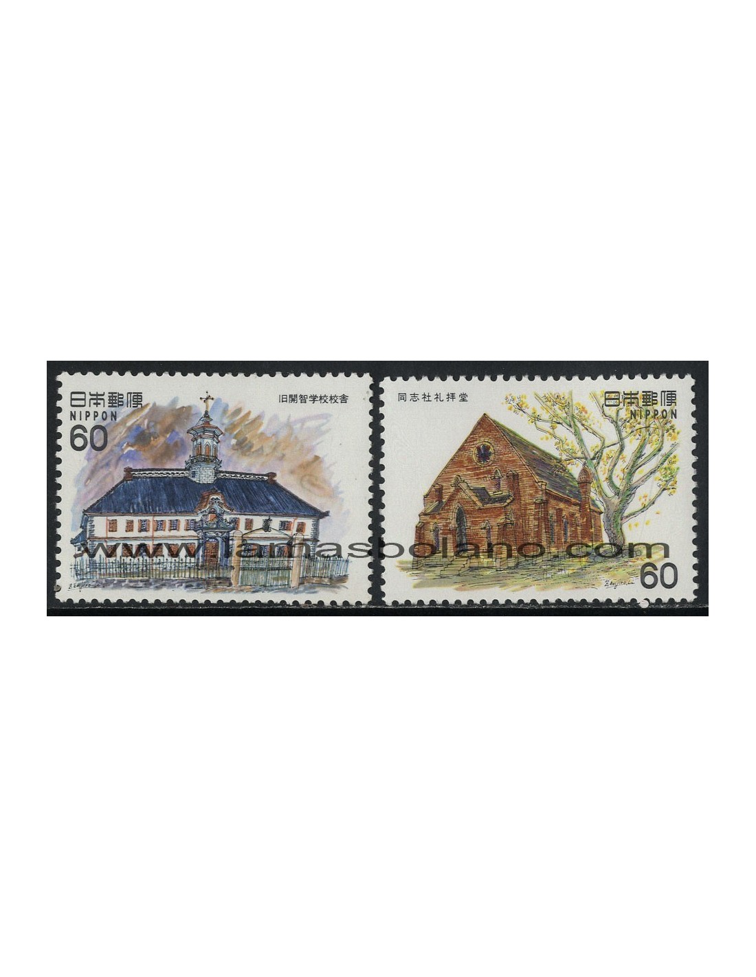 ARQUITECTURA OCCIDENTAL MODERNA EN JAPON (Antigua escuela en Kaichi 1873, Capilla de la universidad Doshisha en Kyoto 1875) - Dentado 13