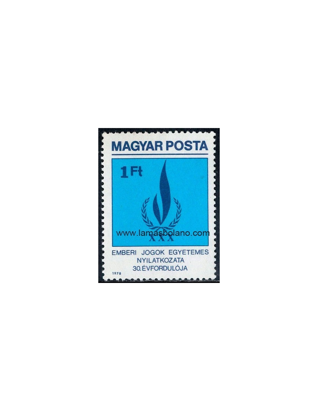 SELLOS HUNGRIA 1979 - DECLARACION DE LOS DERECHOS HUMANOS 30 ANIVERSARIO - 1 VALOR - CORREO