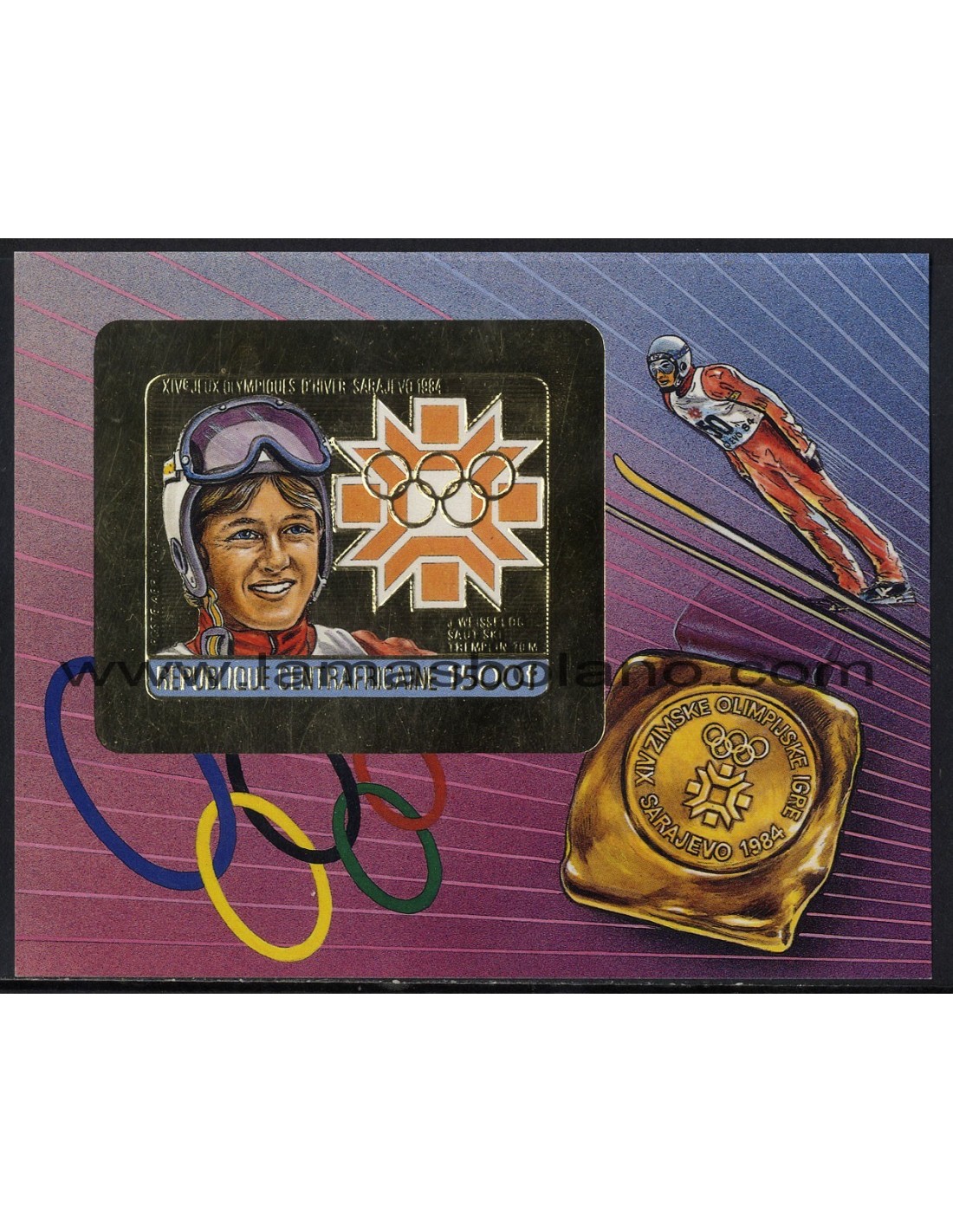 SELLOS DE CENTROAFRICANA 1984 - OLIMPIADA DE INVIERNO DE SARAJEVO VENCEDORES - 1 VALOR SIN DENTAR EMITIDO EN HOJITA EN ORO