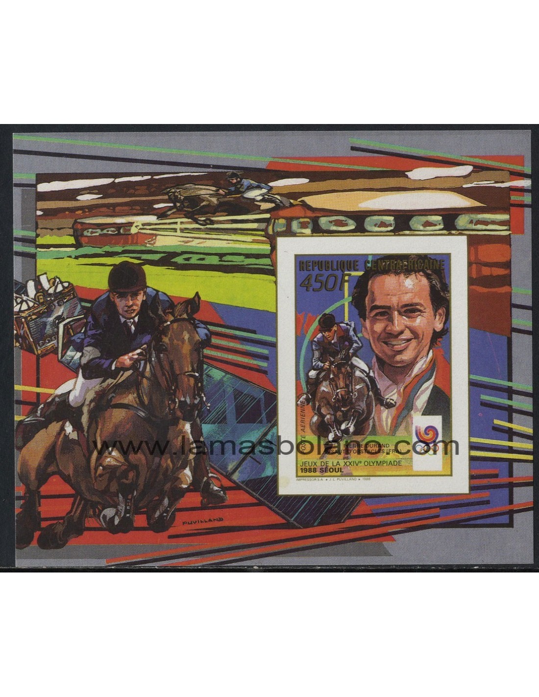 SELLOS DE CENTROAFRICANA 1989 - OLIMPIADA DE SEOUL - PIERRE DURAND - 1 VALOR SIN DENTAR EMITIDO EN HOJITA