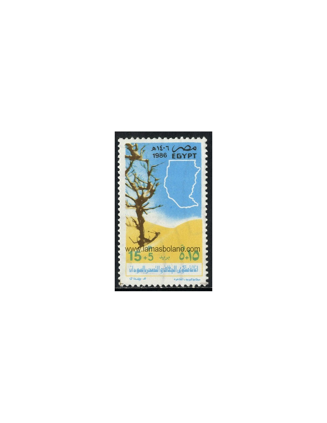 SELLOS EGIPTO 1986 - LUCHA CONTRA LA DESERTIFICACION Y SEQUIA EN SUDAN - 1 VALOR - CORREO