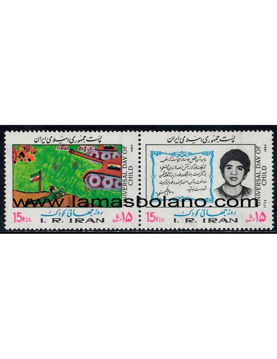 SELLOS IRAN 1986 JORNADA DEL NIÑO DIBUJOS INFANTILES - 2 VALORES DIPTICO - CORREO