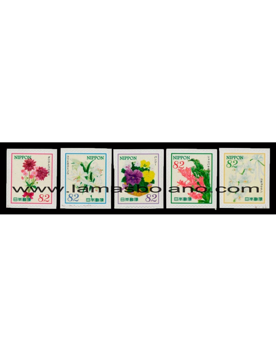 SELLOS JAPON 2015 - FLORES DE HOSPITALIDAD - 5 VALORES AUTOADHESIVOS - CORREO