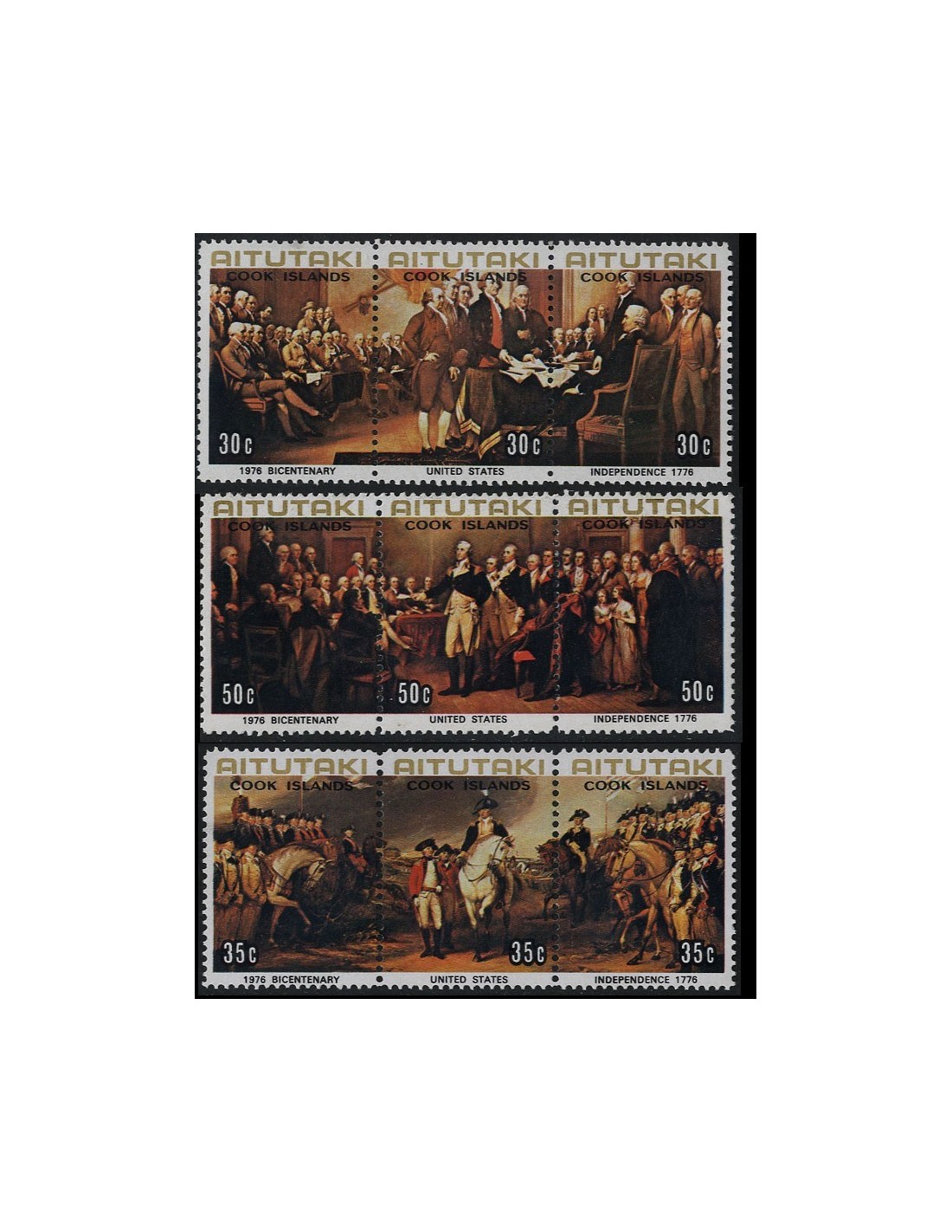 SELLOS DE AITUTAKI 1976 - BICENTENARIO DE LA INDEPENDENCIA DE LOS ESTADOS UNIDOS - 9 VALORES - CORREO