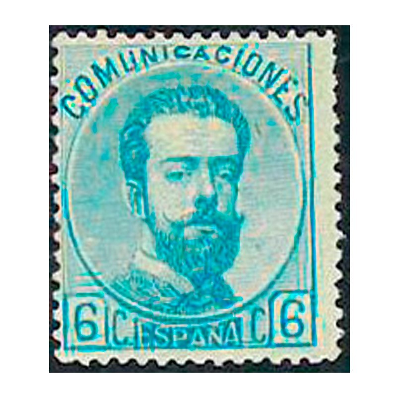 Sello Clásico Corona Real Cifras y Amadeo I 6 Céntimos Azul "Amadeo I"