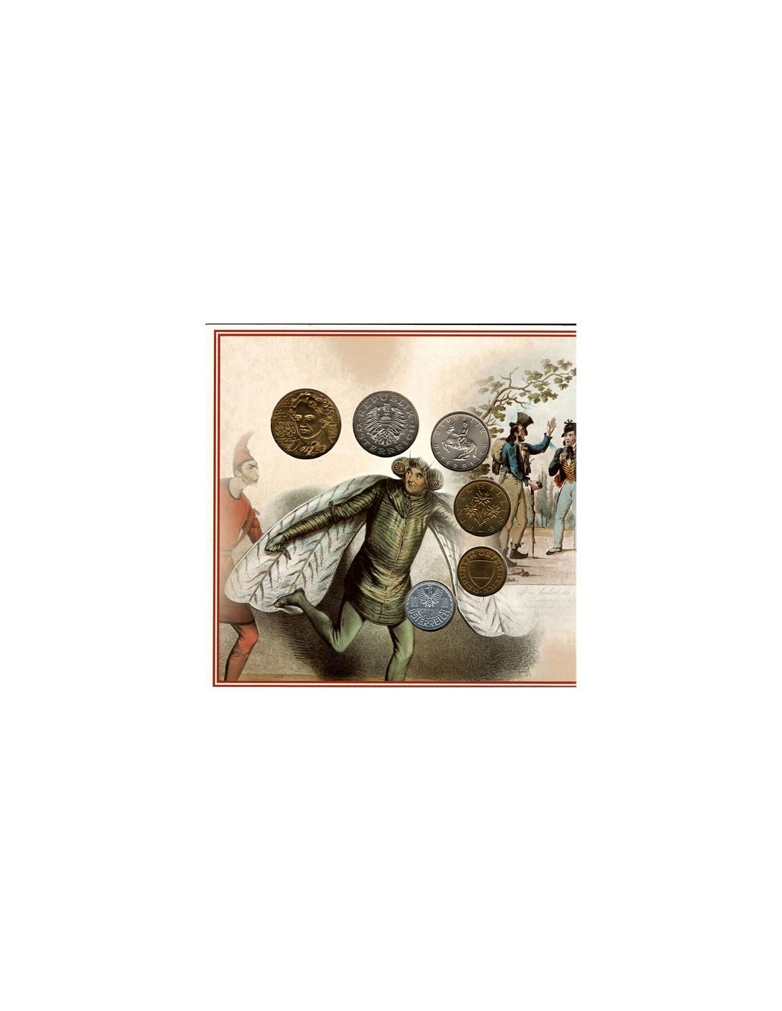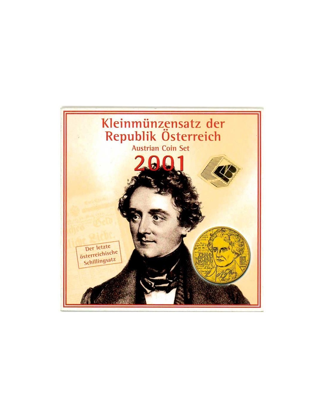 La Casa de la Moneda de Austria presenta la nueva Cartera de Coronas austríacas correspondiente al año 2001, compuesta por 6 monedas (10 y 50 groschen, 2, 5, 10 y 20 schilling) como viene siendo habitual. Este año está dedicada a Johann Nepomuk Nestroy.