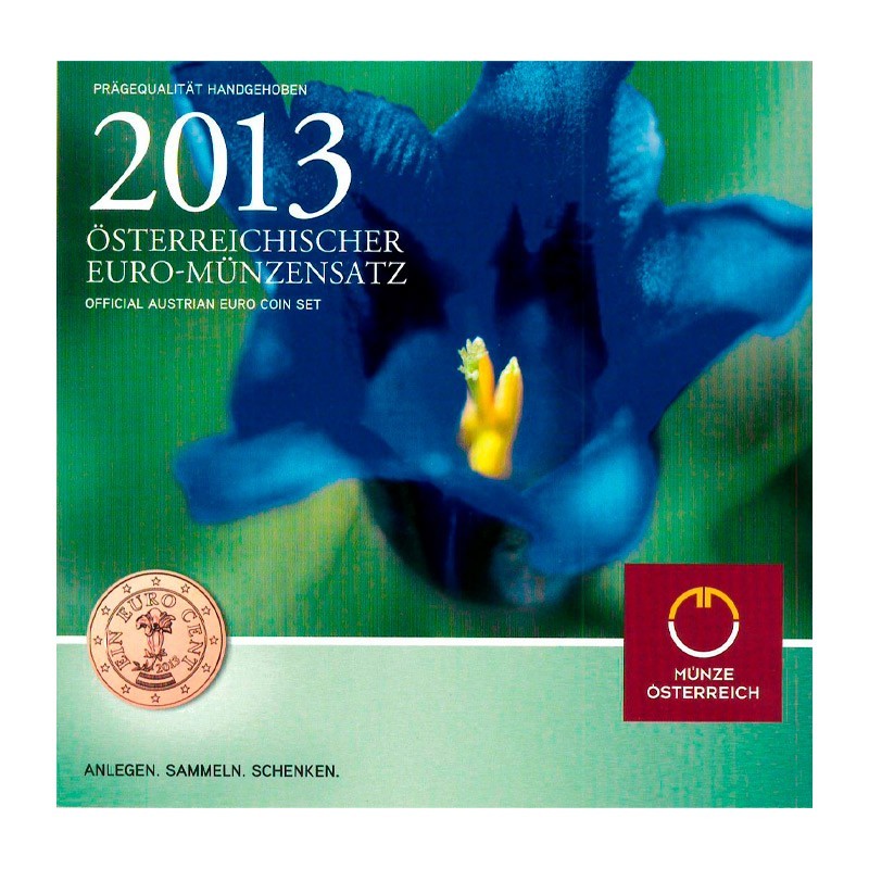 La Austrian Mint presenta la nueva Cartera correspondiente al año 2013, compuesta por 8 monedas (2 y 1 Euro, 50, 20, 10, 5, 2, 1 Céntimos) como viene siendo habitual.