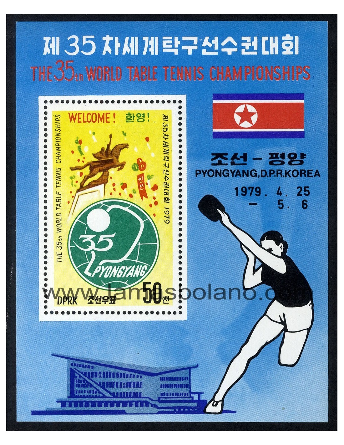 35 CAMPEONATO DEL MUNDO DE PING PONG EN PYONGYANG (Estatua de Chollima y emblema) - Formato 84 x 108