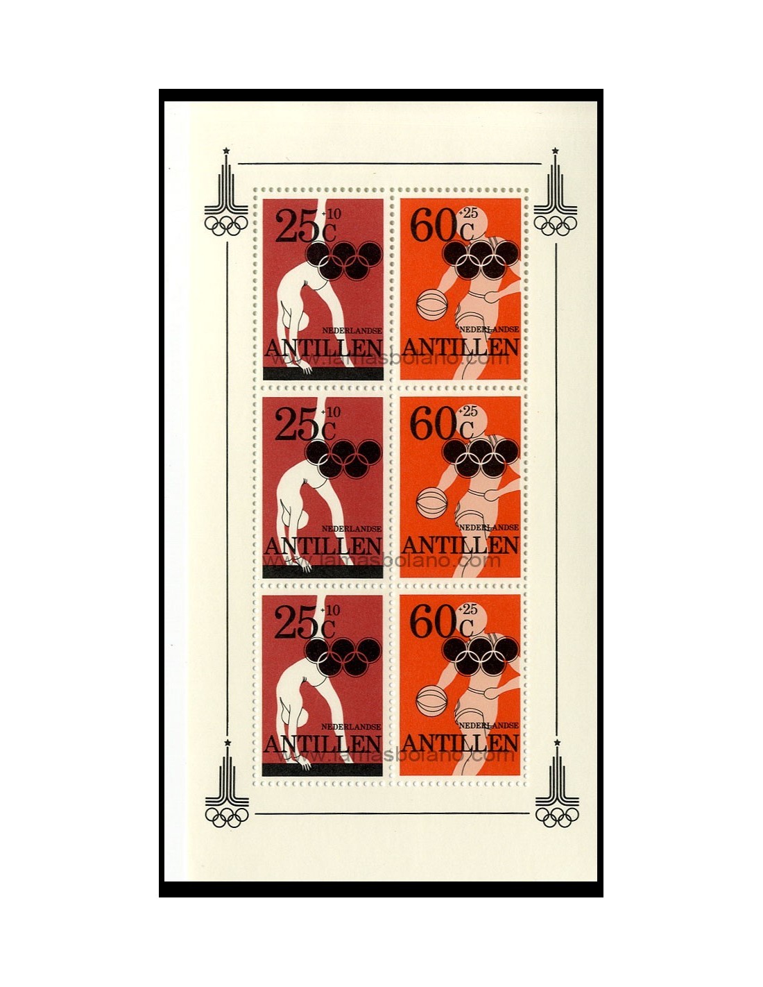 SELLOS DE ANTILLAS HOLANDESAS 1980 - JUEGOS OLIMPICOS DE MOSCU - HOJITA BLOQUE