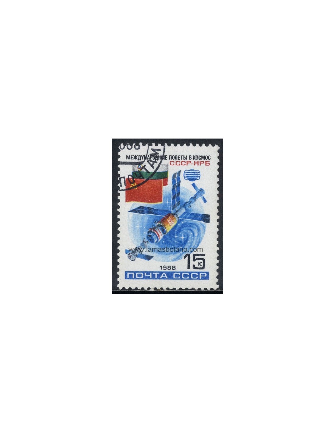 SELLOS RUSIA 1988 - SHIPKA 88 VUELO ESPACIAL CONJUNTO URSS-BULGARIA - 1 VALOR MATASELLADO - CORREO
