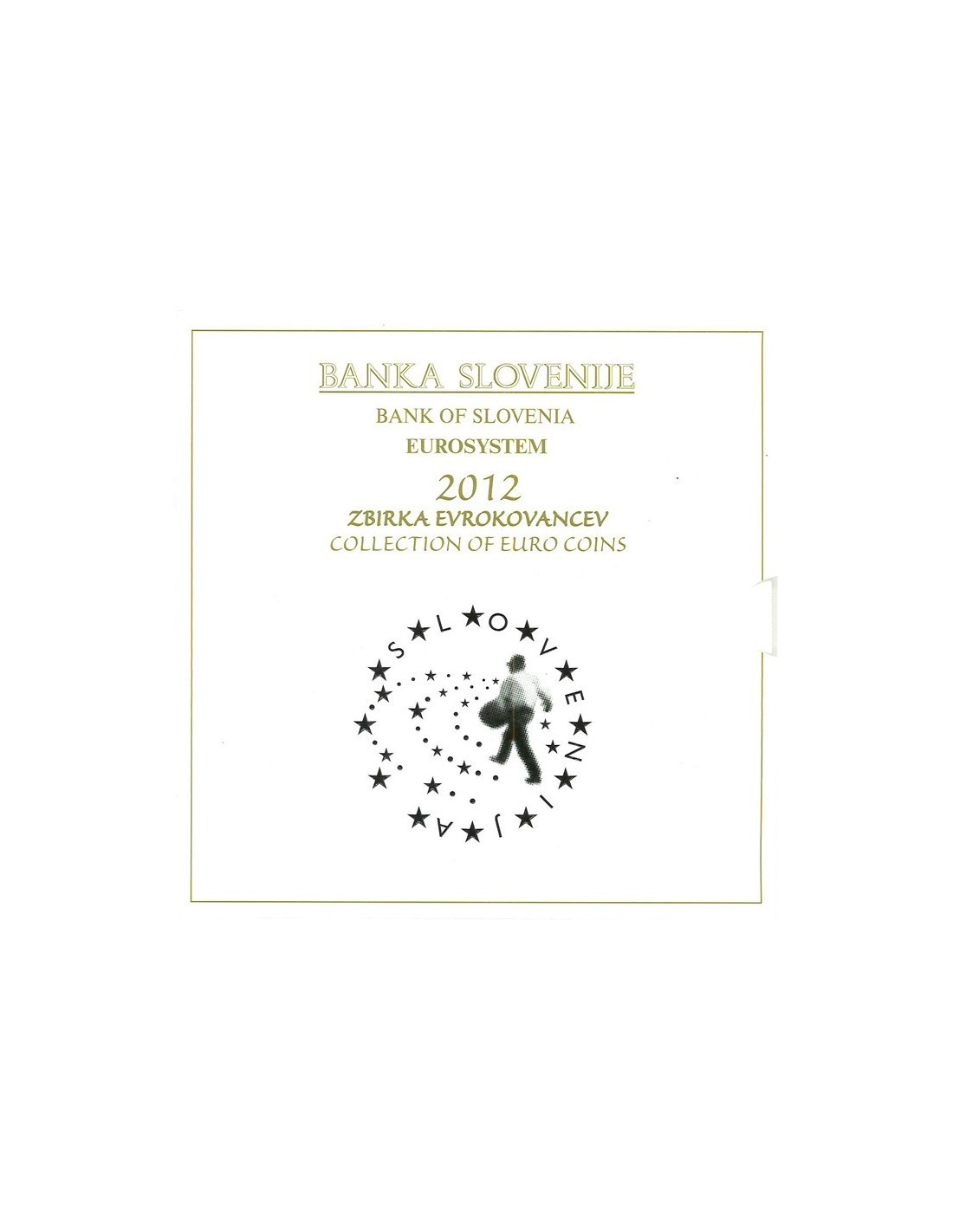 El Banco de Eslovenia presenta la nueva Cartera de Euro correspondiente al año 2012, compuesta por 8 monedas (2 y 1 Euro, 50, 20, 10, 5, 2, 1 Céntimos) como viene siendo habitual. Se incorpora la moneda de 2€ conmemorativa dedicada al 10º Aniversario del Euro. También se acompaña de una medalla con valor nominal de 3€ dedicada al Centenario de la primera medalla olímpica.