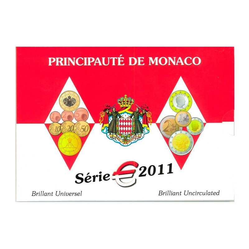 La Monnaie de Paris presenta la nueva Cartera de Euro correspondiente al año 2011, compuesta por 8 monedas (2 y 1 Euro, 50, 20, 10, 5, 2, 1 Céntimos) como viene siendo habitual. El Anverso de las monedas de 1, 2 y 5 céntimos muestra el Escudo de armas de los Grimaldi, las monedas de 10, 20 y 50 céntimos muestra el sello histórico de S.A.S. el Príncipe Rainiero III utilizado como motivo monetario desde 1950, la moneda de 1 Euro muestra la doble efigie del Príncipe Soberano y el Príncipe Heredero, y la moneda de 2 Euro muestra la efigie del Príncipe Rainiero III. El Reverso de las monedas es común a todos los países. Rodea las monedas las doce estrellas. Carterita Euro Oficial con una tirada de 7.000 unidades y un valor facial de 3.88 Euro.