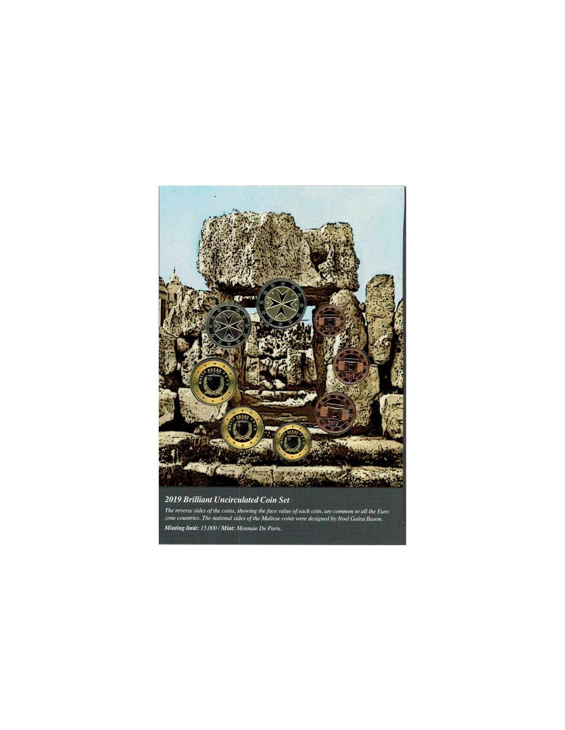 El Banco de Malta presenta la nueva Cartera de Euro correspondiente al año 2019, compuesta por 8 monedas (2 y 1 Euro, 50, 20, 10, 5, 2, 1 Céntimos), más la moneda de 2 euro conmemorativa dedicada al Templo Ta'Hagrat.