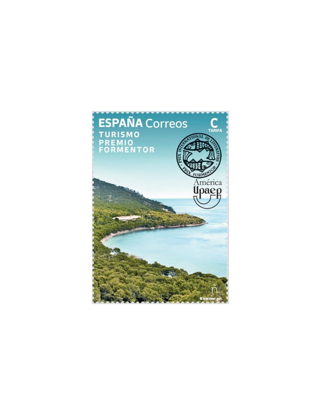 El motivo elegido por la filatelia española es el Premio Formentor. Este premio que fue fundado en 1960 por las editoriales Seix-Barral, Gallimard, Einaudi, Rowohlt, Weidenfeld y Grove Press, bajo el mecenazgo de las familias Barceló y Buadas, ha tenido como galardonados a autores como Dacia Maraini, Jorge Luis Borges o Saul Bellow.