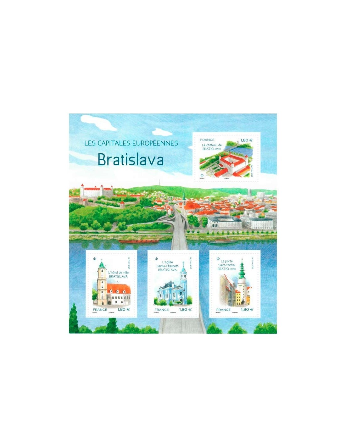 Capitales europeas. Castillo, Hotel, Iglesia Santa-Elizabeth y Puerta San Miguel de Bratislava. Dentado 13½. Tirada 400.000
