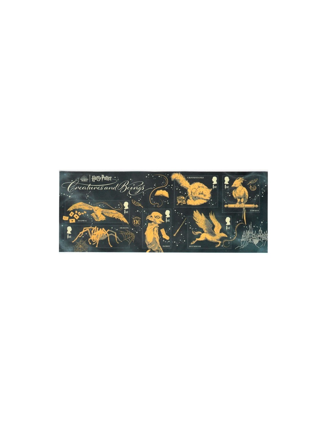 6 valores autoadhesivos emitidos en hojita bloque. IIlustraciones de diferentes personajes de la saga.