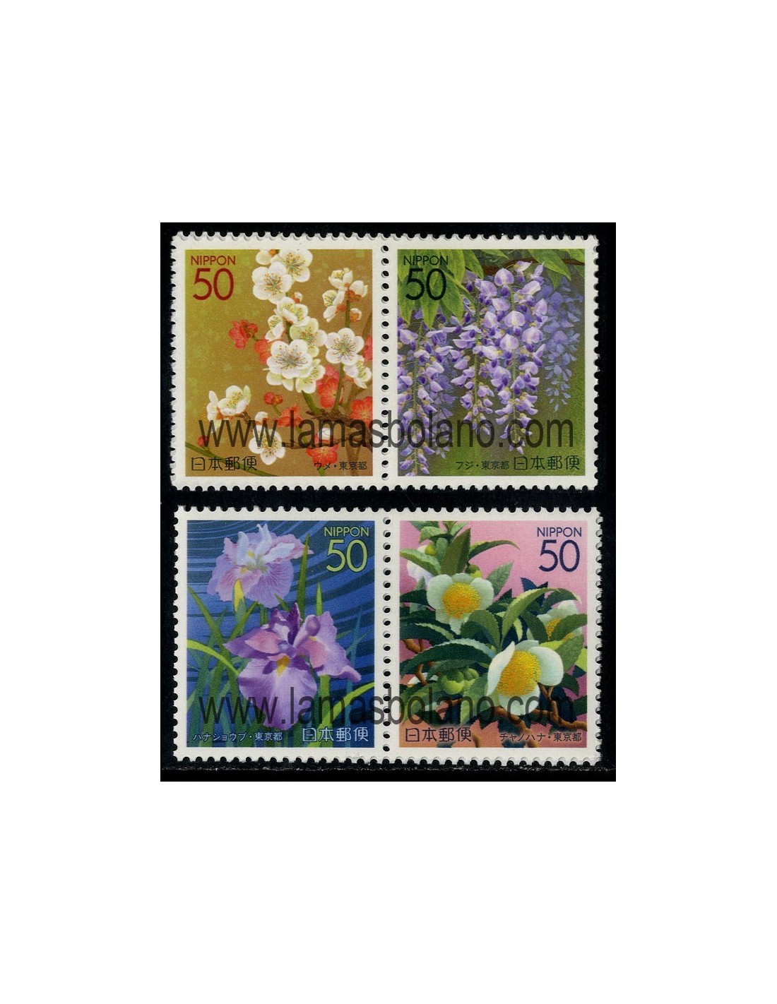 Flores blancas y rojas, glicina, iris, flores. Serie completa de 4 valores.
