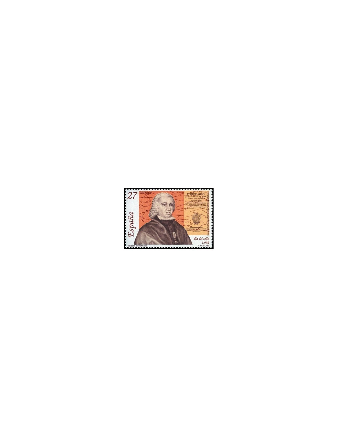 Fecha emisión: 21 febrero 1992 - Día del sello. Sello procedente de mini-hojita. Conde de Campomanes.