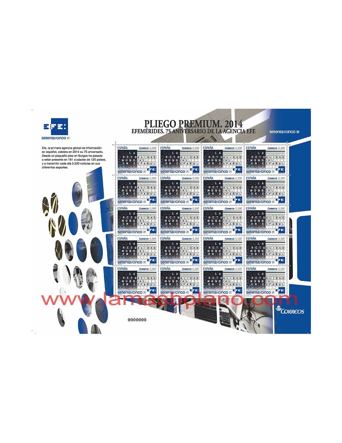 Se conmemora el 75 aniversario de la fundación de la ONCE, la agencia de noticias EFE y el Ejército del Aire, con la emisión de tres sellos de la serie Efemérides, recogidas en tres Pliegos Premium que recuerdan la labor que desarrollan estas entidades en nuestra sociedad.