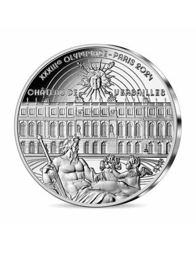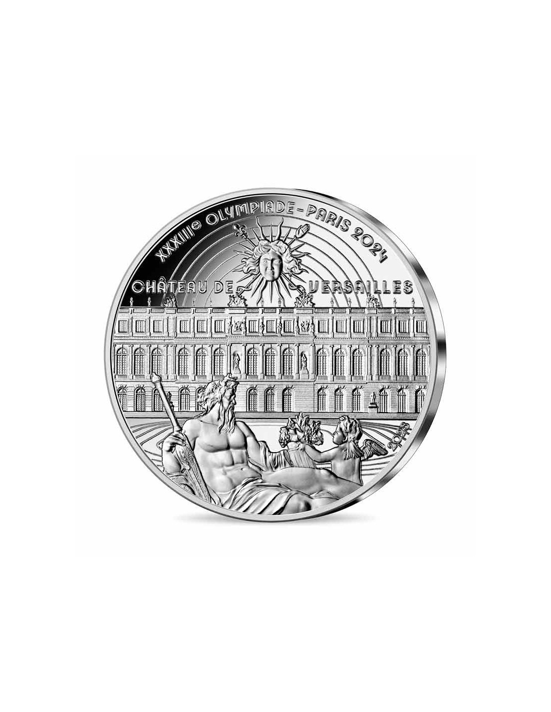 El Anverso de la moneda muestra a la fachada del Palacio de Versalles. El Reverso de la moneda , común en toda la serie, muestra una vista de París en la que el Río Sena parece una pista de atletismo. La Torre Eiffel domina la ciudad e ilumina la competición. En la parte superior el logo de Paris 2024 y en la parte inferior el valor facial 10 Euro. Moneda de 10 Euro Plata 999% Proof con una tirada de 7.500 monedas acompañada de su correspondiente estuche y certificado de garantía y autenticidad.