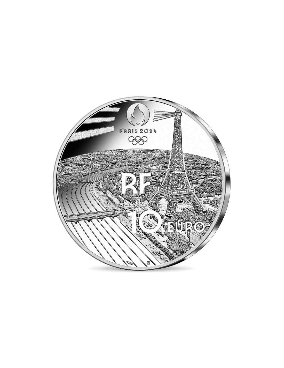 El Anverso de la moneda muestra una imagen de la Plaza de la Concordia. El Reverso de la moneda, común en toda la serie, muestra una vista de París en la que el Río Sena parece una pista de atletismo. La Torre Eiffel domina la ciudad e ilumina la competición. En la parte superior el logo de Paris 2024 y en la parte inferior el valor facial 10 Euro. Moneda de 10 Euro Plata 999% Proof con una tirada de 7.500 monedas acompañada de su correspondiente estuche y certificado de garantía y autenticidad.