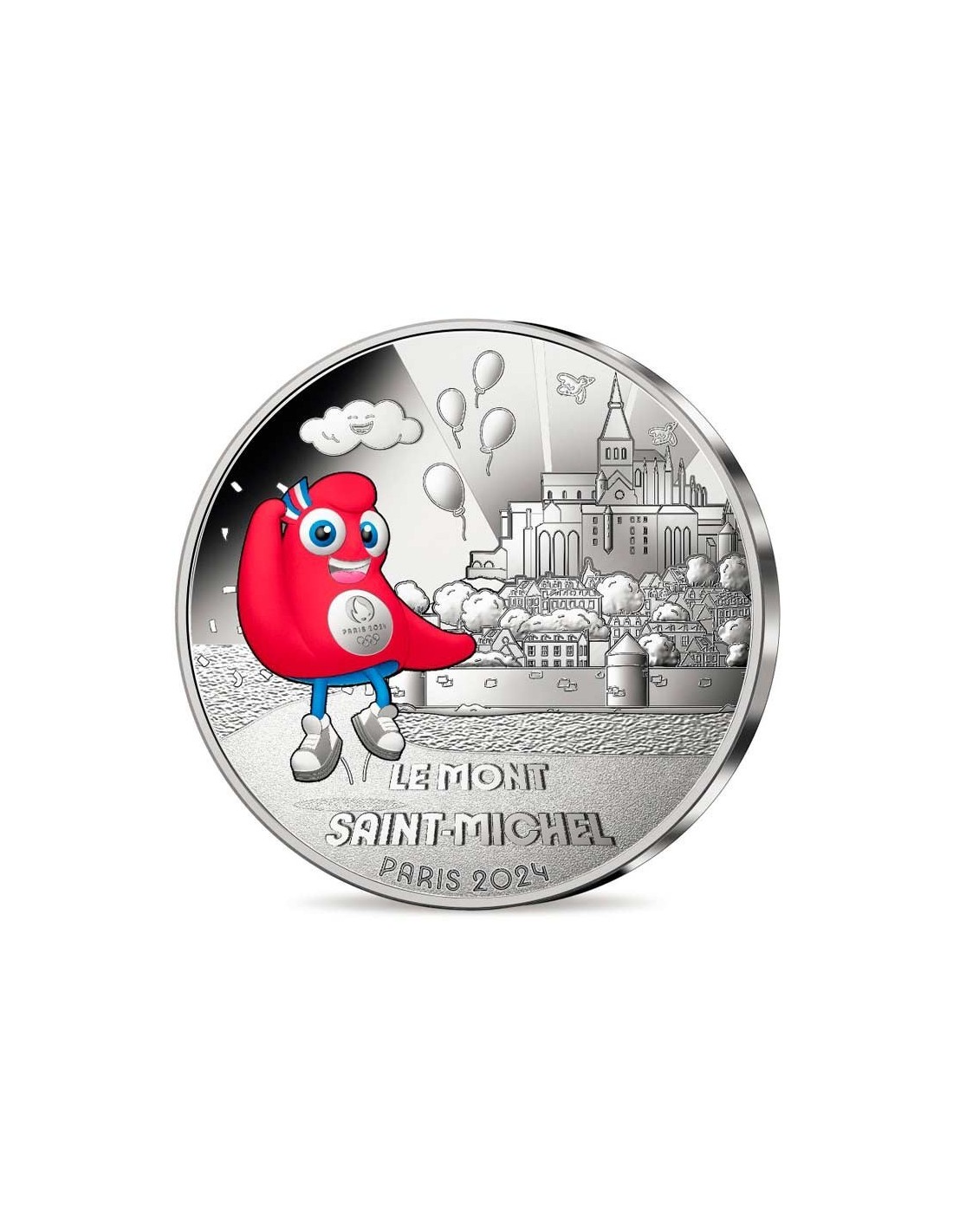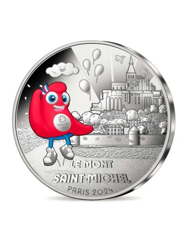 El Anverso de la moneda a color, diseñada por Joaquín Jiménez, muestra a la mascota de los Juegos Olímpicos de París 2024 saltando de alegría frente al famoso Monte Saint Michel rodeado de agua. El cielo surcado por globos y confeti simbolizando el júbilo por albergar uno de los eventos con mayor simbolismo en la historia de la humanidad. El Reverso de la moneda , común en toda la serie, muestra entre hexágonos el valor facial de 10 Euro enmarcado por una hoja de laurel y otra de roble y; el año de acuñación. Moneda en plata 333% a color con una tirada de 75.000 monedas. Viene presentada en un blíster que actúa de certificado de garantía y autenticidad.