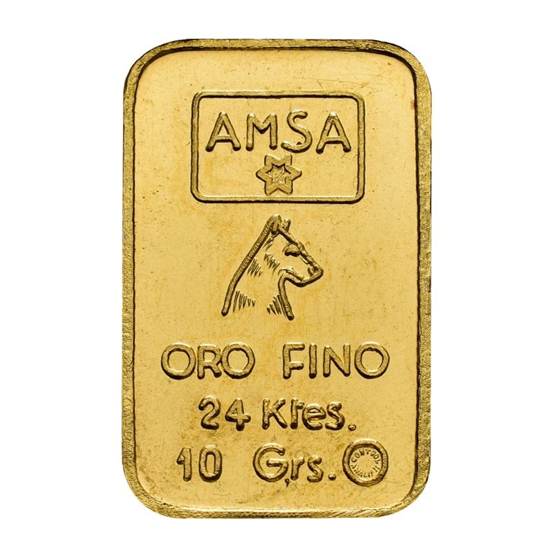 Lingote de Oro de Estampación de 10 gramos en Oro 999.9 fino. Lingotes muy apreciados tanto por inversores como por coleccionistas. Oro de Inversión Exento de IVA.