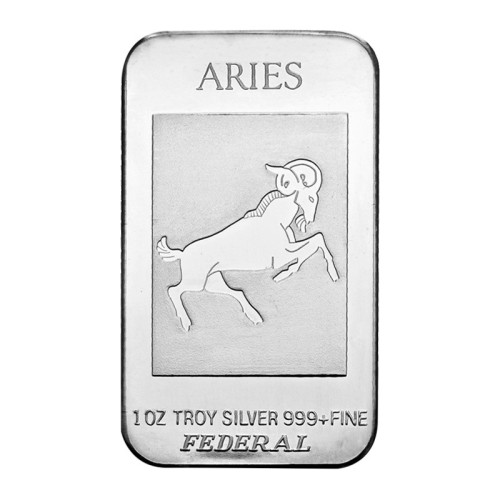 Lingote de estampación Vintage de 1 Onza en Plata. Signo Aries. Medidas: 50.00mm x 31.00mm