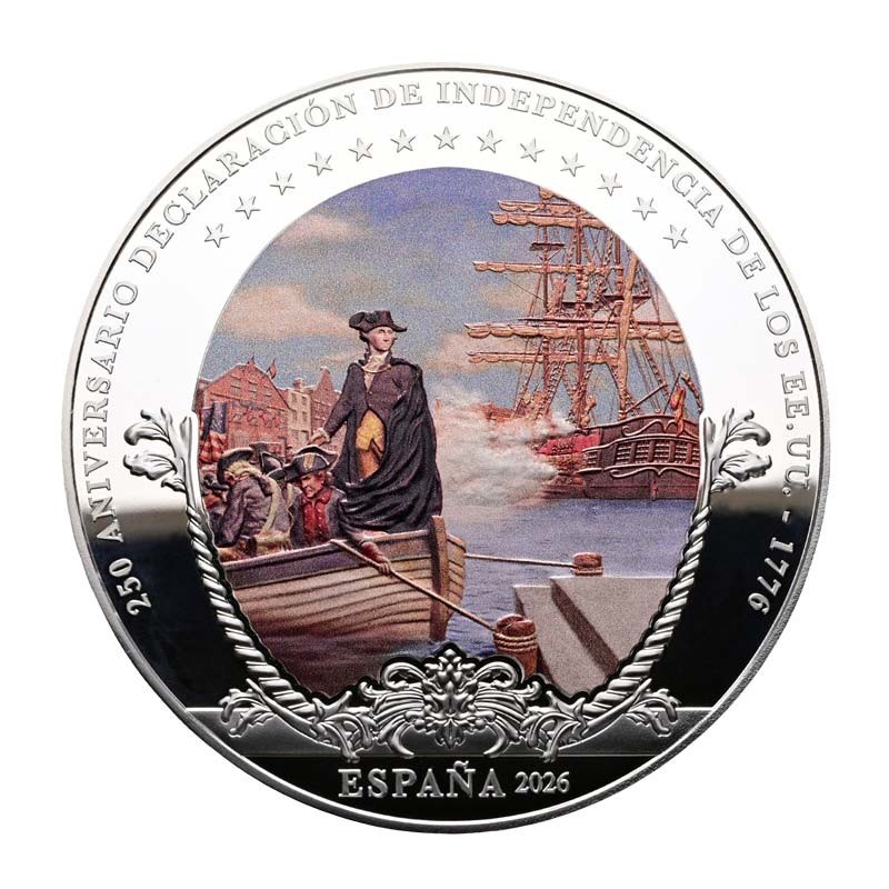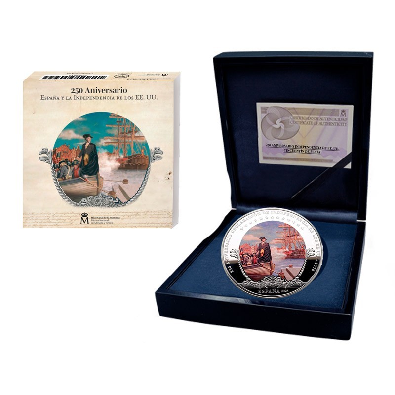 Para conmemorar el papel significativo que tuvo España en la Guerra de Independencia de los Estados Unidos La Fábrica Nacional de Moneda y Timbre emite una colección de 10 monedas en honor al 250 Aniversario de su Independencia 1776-2026 compuesta por: 10 y 50 Euro en plata y 200 Euro en Oro; formando parte así del extenso programa numismático oficial que se emitirá entre 2025 y 2026 y del cual forman parte diversas Cecas Oficiales. España se convirtió en un apoyo crucial para la causa revolucionaria, aportando asistencia militar, financiera y estratégica, siendo clave para el éxito final de la independencia americana. Bajo el liderazgo de figuras como Bernardo de Gálvez, las fuerzas españolas combatieron contra los británicos en batallas clave a lo largo de la Costa del Golfo y el Valle del Misisipi. Más allá del campo de batalla España proporcionó financiación esencial, suministros y puertos seguros, que sostuvieron el esfuerzo revolucionario en algunos de sus momentos más difíciles.