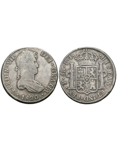8 Reales 1820 Potosí PJ Fernando VII. Buen Ejemplar. Conservación: MBC