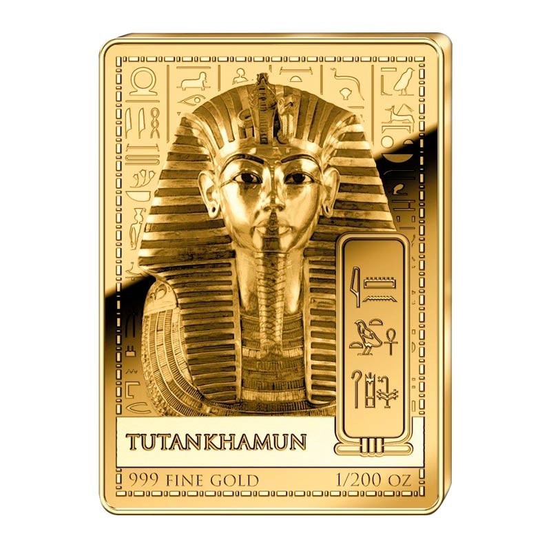 Esta moneda rinde homenaje al Faraón del antiguo egipcio por antonomasia Tutankamón. Último Rey de la Dinastía XVIII ascendió a la trempana edad de cuatros años al trono de Egipto y gobernó desde aproximadamente 1353 a.C. a 1336 a.C. Su momia se encuentra en el Museo del Valle de los Reyes en Egipto descubierta en 1922 por el arqueólogo Howard Carter. La fascinación por este faraón ha trascendido generaciones y ahora inspira una extraordinaria moneda de 1/200 Onza en Oro 999% presentada en estuche de metraquilato junto a su certificado de autenticidad.