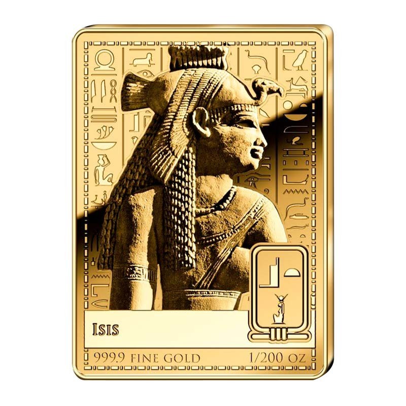 Esta moneda rinde homenaje a la Diosa Egipcia Isis. Considerada como la diosa del nacimiento, el renacimiento y, también como la de la muerte. Junto a sus marido Osiris, dios del infamando y madre de Horus, se convirtió en una de las deidades de mayor adoración en el antiguo egipto. La fascinación por esta diosa ha trascendido generaciones y ahora inspira una extraordinaria moneda de 1/200 Onza en Oro 999% presentada en estuche de metraquilato junto a su certificado de autenticidad.