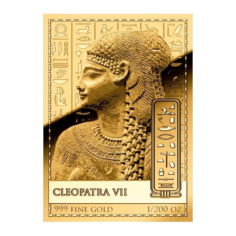 Esta moneda rinde homenaje a la última Reina Egipcia Cleopatra VII perteneciente a la dinastía Ptolemaica XVIII del Antiguo Egipto. Famosa gracias a su busto obra del escultor egipcio Tutmose descubierto en el siglo XX. Actualmente se encuentra en el Museo Neues de Berlín. La fascinación por esta diosa ha trascendido generaciones y ahora inspira una extraordinaria moneda de 1/200 Onza en Oro 999% presentada en estuche de metraquilato junto a su certificado de autenticidad.
