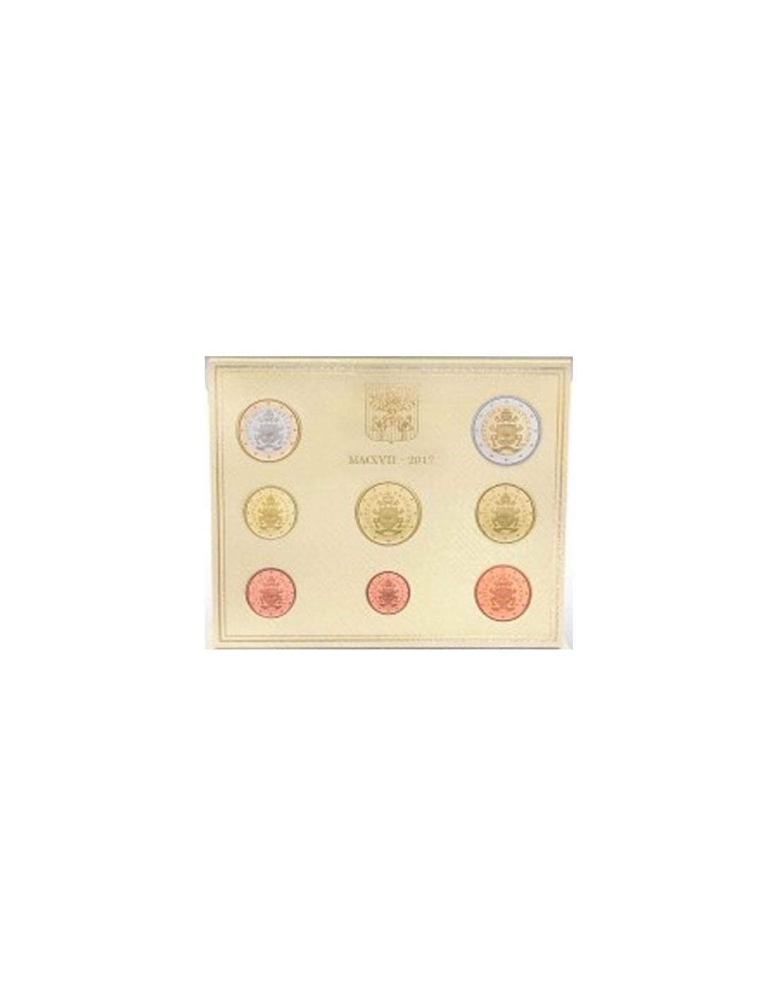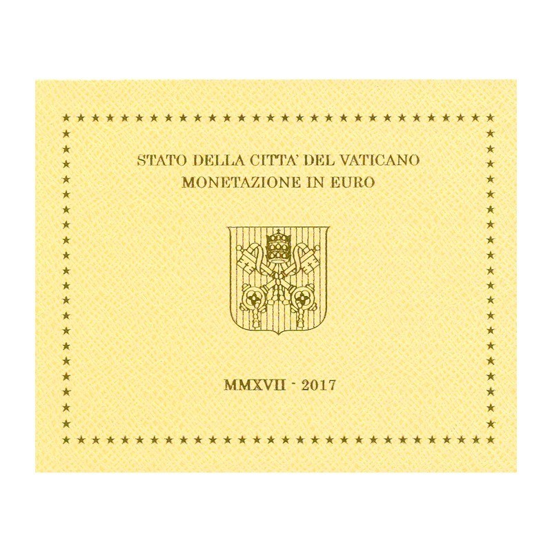 La Casa de la Moneda del Estado de la Ciudad del Vaticano presenta la nueva Cartera de Euro correspondiente al año 2017, compuesta por 8 monedas (2 y 1 Euro, 50, 20, 10, 5, 2, 1 Céntimos) como viene siendo habitual.