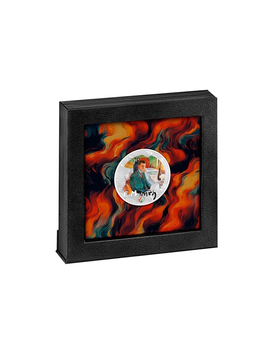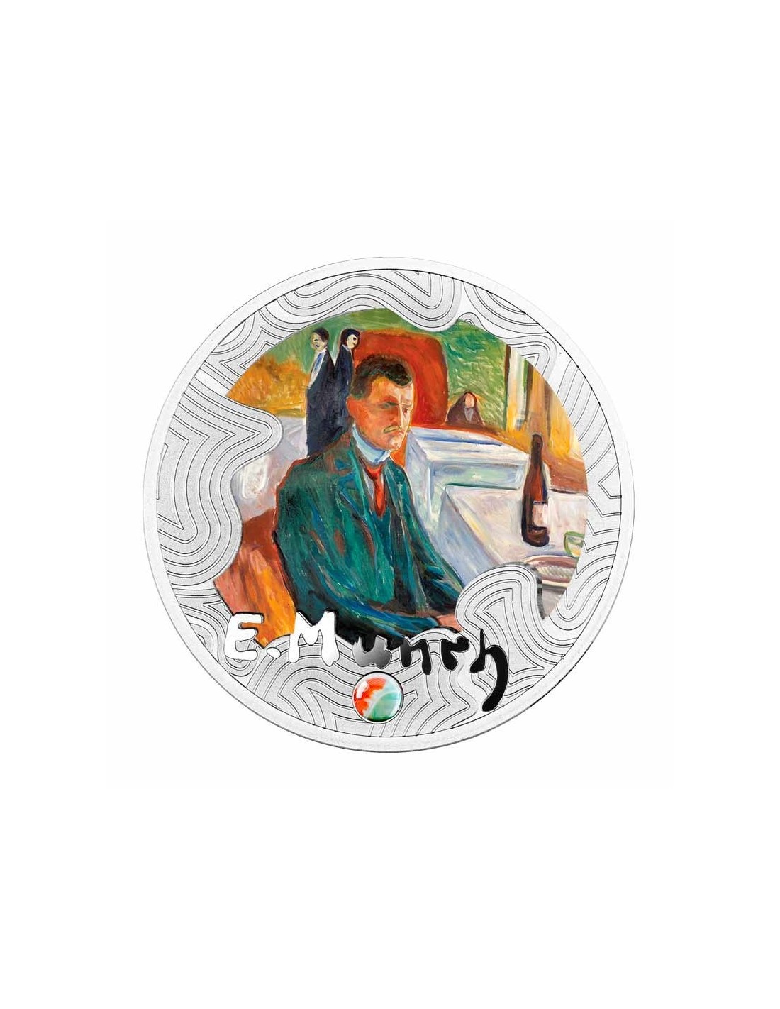 Para conmemorar el 160 Aniversario del nacimiento de Edvuard Munch la Casa de la Moneda Poland Mint acuña una moneda en Plata en el que se muestra un Auto-Retrato del artista. Sus obras fueron un fiel reflejo de los conflictos internos y malestares del alma humana. El Reverso de la moneda muestra el escudo del país emisor, el valor facial, composición y año de acuñación. Moneda en Plata Pura con una tirada de 700 unidades y acompañada su correspondiente estuche y certificado de autenticidad.