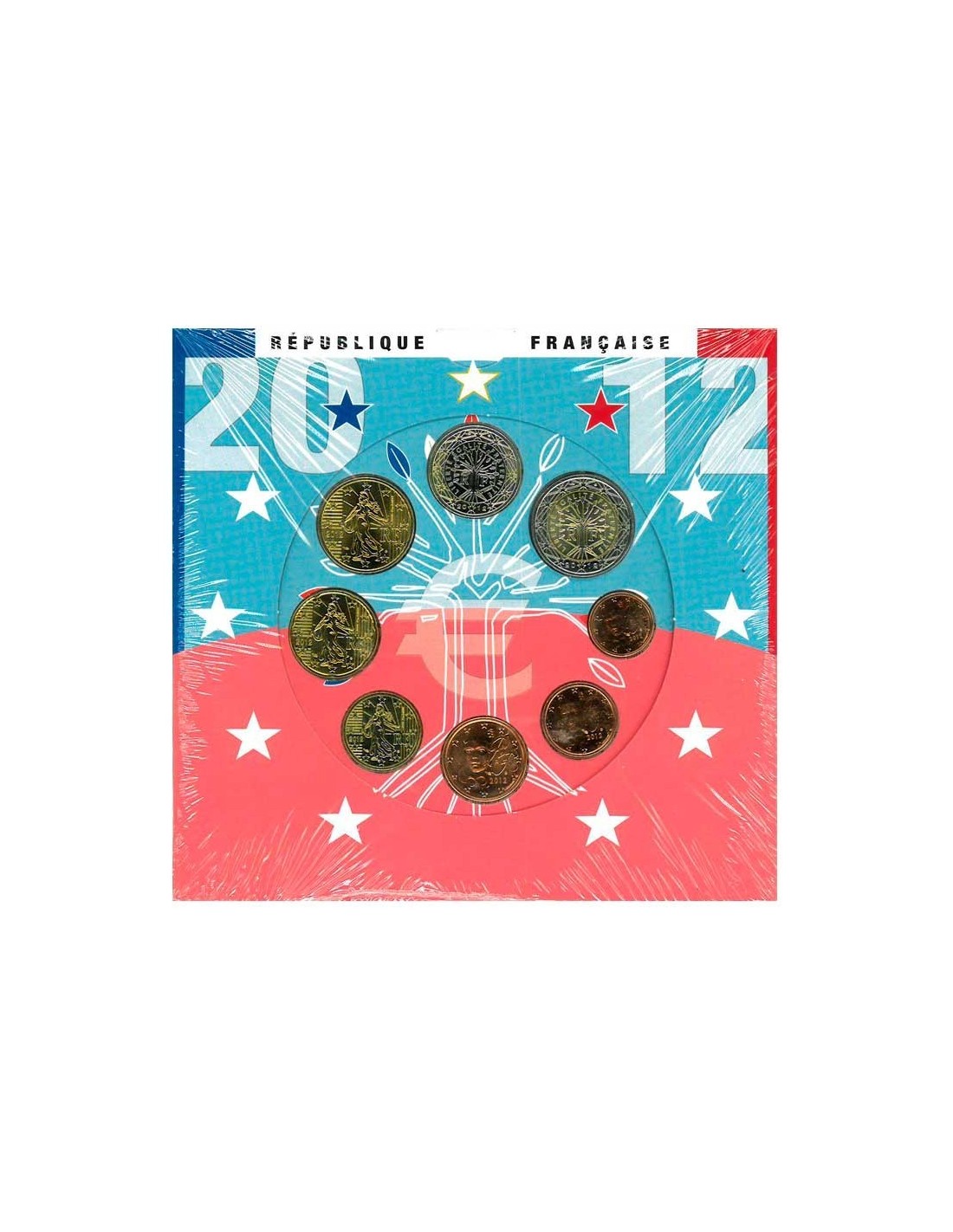 La Monnaie de Paris presenta la nueva Cartera de Euro correspondiente al año 2012, compuesta por 8 monedas (2 y 1 Euro, 50, 20, 10, 5, 2, 1 Céntimos) como viene siendo habitual. El Anverso de las monedas de 1, 2 y céntimos muestran a una Marianne joven y femenina; las monedas de 10, 20 y 50 céntimos muestran a la sembradora; las monedas de 1 y 2 Euro muestran un árbol como símbolo de la vida. El Reverso de las monedas es común a todos los países. Rodea las monedas las doce estrellas.
